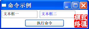 现在运行一下,可以发现,点击按钮后,第二个文本框的前景色就变成蓝色了。 ![]() CanExecute事件和Executed事件都是路由事件,当然,RouteCommand类也包含遂道事件,至于什么是路由事件,什么是遂道事件,不在本文讲述的范围之中。 以路由事件为例,下面我们来做第二个示例。这个示例,窗体上有一个StackPanel,里面包含一个按钮,同时,把CommandBinding添加到该StackPanel上,而该StackPanel里面再嵌套一个DockPanel,同样,把同一个命令也添加到DockPanel上,DockPanel里面再包含一个Canvas,但是Canvas不添加CommandBinding,然后,在Executed事件处理程序中分别输出引发事件的类型,命令目标类型和目标的Name属性的值。